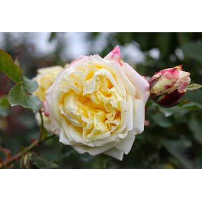Немецкая роза Атена, входящая в коллекцию Eleganza, представляет собой сильнорослый куст с прямостоячими побегами. Высота этого растения может достигать 100-125 сантиметров. Куст обладает средней облиственностью, крупными темно-зелеными листьями с матовой поверхностью, мощными стеблями с редкими острыми колючками, а также развитым корневищем, глубоко проникающим в почву. На каждом стебле формируется от 3 до 5 цветков. Куст выглядит компактно, воздушно и объемно, достигая около 100 сантиметров в диаметре.