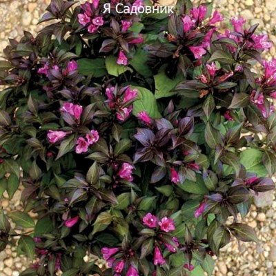Вейгела цветущая Минор Блэк — это прекрасное растение, которое станет ярким украшением любого сада. Его крупные цветы лавандово-розового цвета, похожие на колокольчики, распускаются в начале лета и особенно эффектно смотрятся на фоне тёмной листвы.